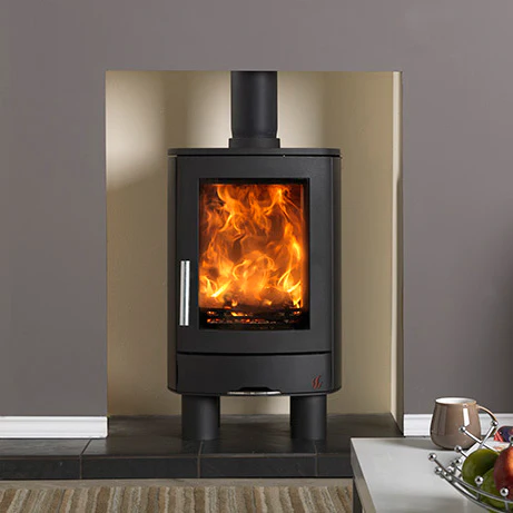 The NEO3F-ECO woodburning stove has four short cylindrical legs making it suited for installing into fireplaces as well as freestanding installations. The stove is also EcoDesign Ready and DEFRA exempt making it highly efficient.