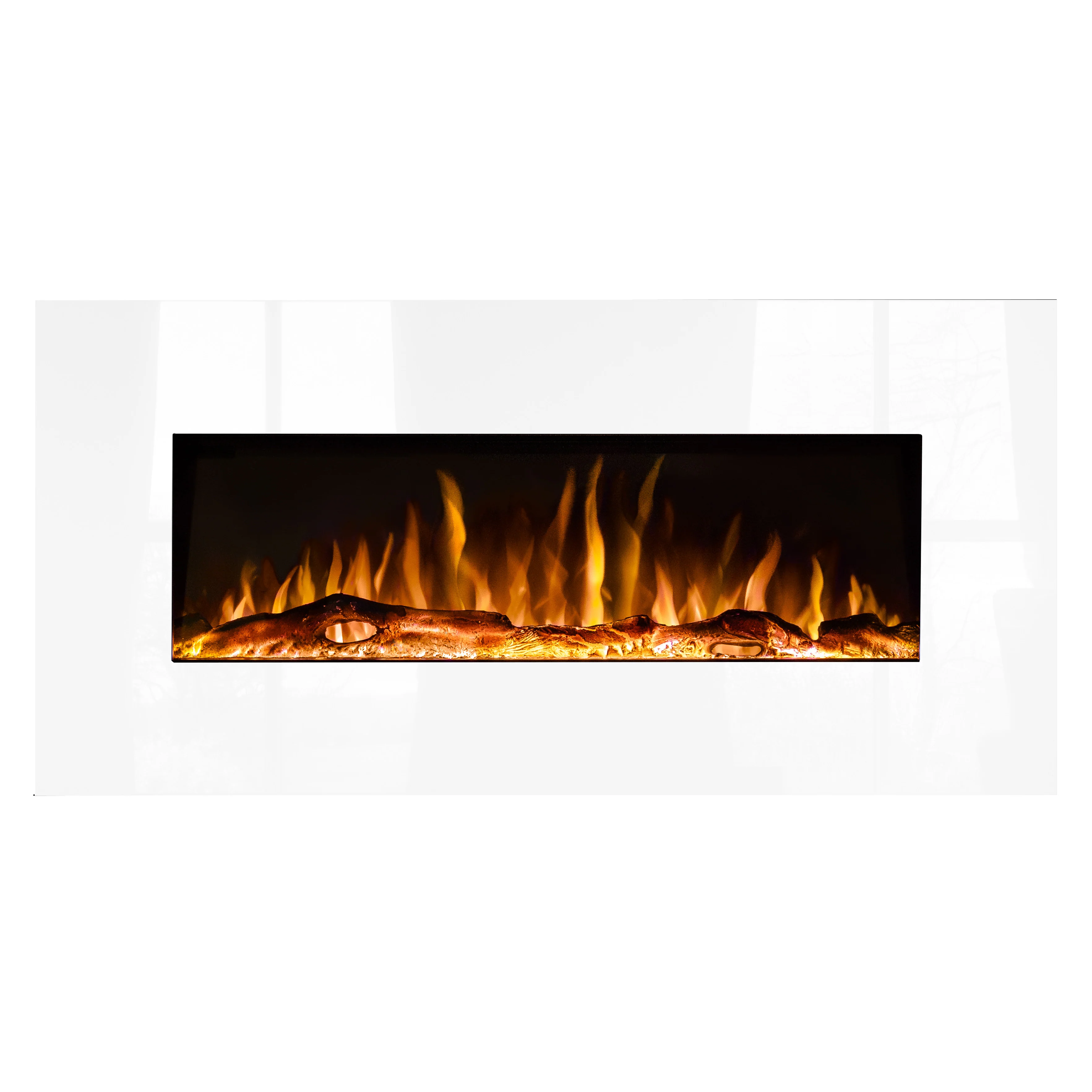 - A slim-line remote control and touch screen to operate the flame effect, brightness, and heat settings with thermostatic control